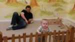 DH is less than impressed with our new block-filled living room floor. We went to a friend's son's first birthday party today and our friend isn't sure if she can make it to DS' first birthday party next month because of her work schedule so she gave DS his presents today. He is very much enjoying his blocks and toy ATV. DS wasted no time in spreading the blocks throughout the living room. DH will learn the value of shuffling his feet when he walks sooner than later, methinks!