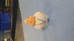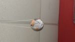 I found him on a cabinet that houses spill kits and other odds and ends. I stuffed him inside a large tape roll and added string and he's happily swinging from the ceiling in the equipment room.
