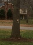 Here's a picture of the squirrel that we feed. Moby... He's eating peanuts on the porch and Deb is trying to get to him..