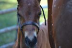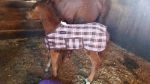 Now, Calypso had been checked for such things as pregnancy in her very first vet visit back in May, before she even got the pnemonia,  and was cleared as open, but the big round  belly that was supposed to go away with dewormer and good hay was still stubbornly in place. Vet wasn't concerned, said these things take time, but drew a blood sample to 'put the matter to rest'.