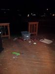 hear her, but at least she can't jump up on us before we're