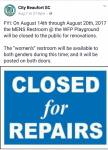 Actually women's restroom is correct. It's Mens that is not. It should be Men's. Women and Men, as spelled there, are already plural. Adding the... 's ... makes it possessive form, as it should be.