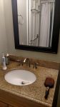 /so the sink / countertop isn't so bad replaced that 6 years ago. But I am replacing it. But look at the 70's blue shower and the mold on the ceiling. Plus the light fixture. All being replace tomorrow. Plus the mirror, putting in a medicine cabinet.
