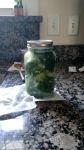 Pickling going on. I hope this turns out well. Called refrigerator dill pickles. Will be ready in 3 days. Recipe called for a tablespoon of sugar but DS is border diabetic, controlling with diet. So I cut the sugar down by 2/3 rds.